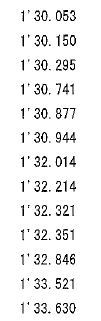 僕のひとつ上の人とは、100分の3秒差! F1の予選タイム見てるみたいw