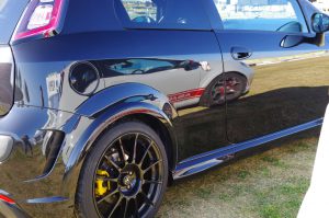 スコルピオーネのアップ。ウチのプントがキレイに映るほどピカピカ