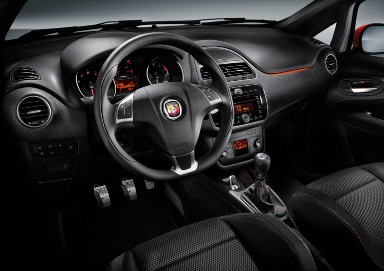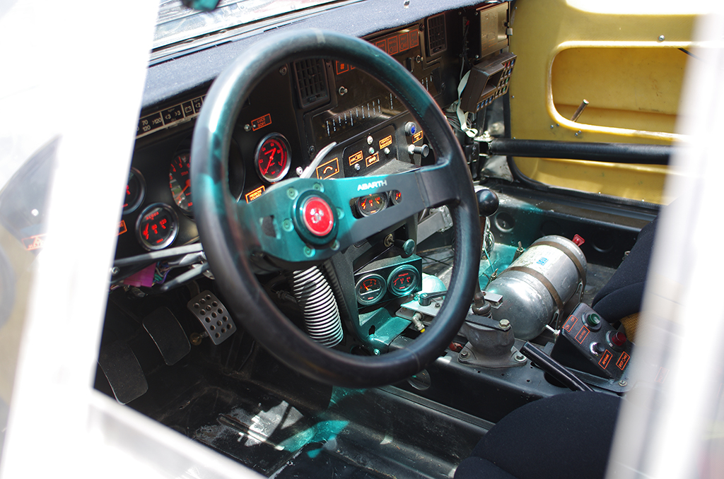 131アバルトの“仕事場”。2本スポークのステアリングが似合う。