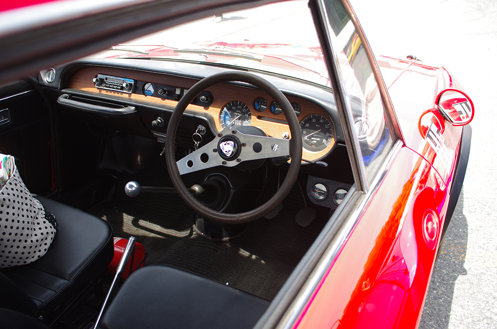 これはランチア フルビア。クラシックな2本スポークが雰囲気を出してる。
