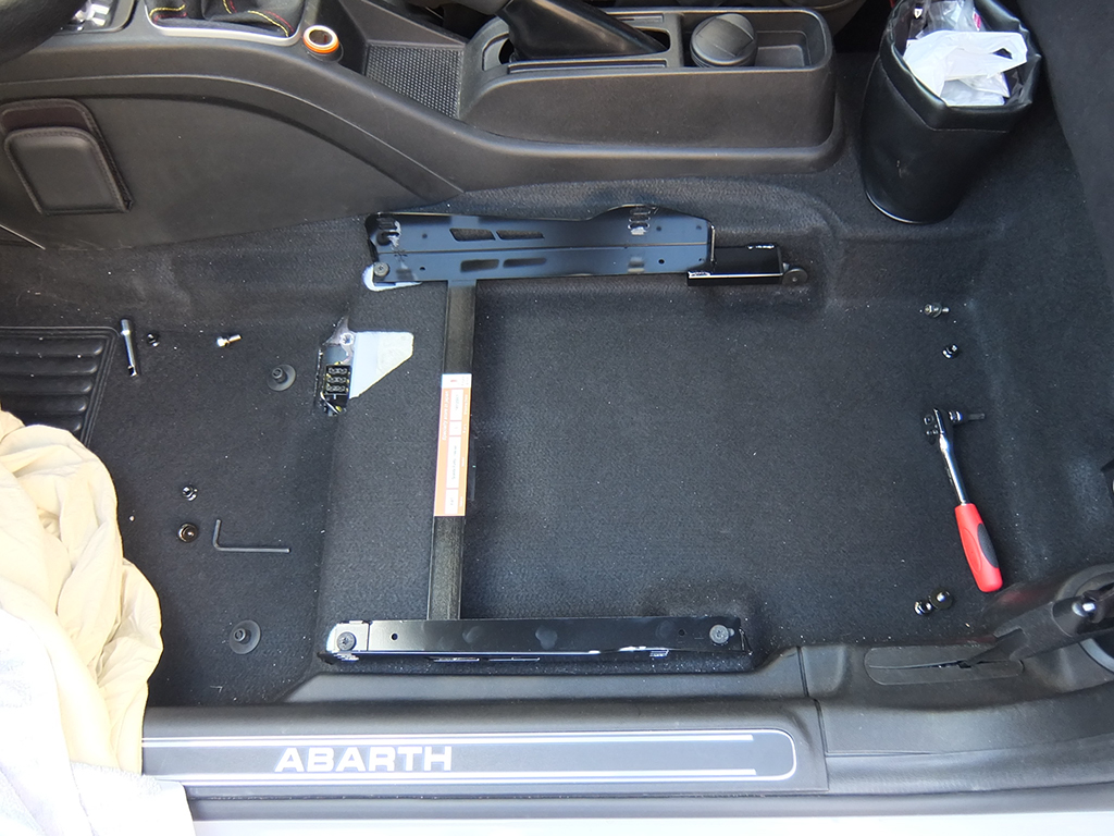 エアバッグのコネクタを外して抵抗を噛ませたり、ノーマルのシートを外してベースを取り付けたり、あれやこれやは、シートレールに付いてきた取説に書かれていた。なので、その辺はわりとサクサクと作業が進む。