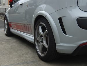 この写真の通り、フロントサイドから入ったエアがホイールハウス直前の縦スリットから排出されるように、穴が貫通しているわけですよ。