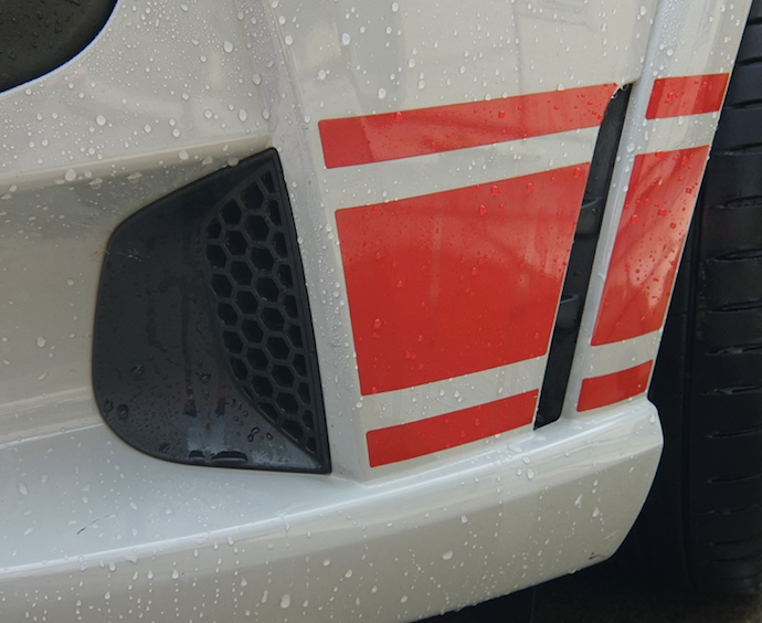 でも、これがあるおかげで、リアビューがカッコ良く見える。ちょっと分厚い感じのリアクォータービューが締まって見えるし、空気の流れも感じられる。フォースのちから、じゃなくて、ダウンフォースのちから(笑)、みたいな。