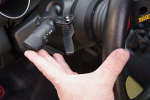 うちの深いコーンハンドルのアバルト プントだと、ウインカーレバーがはるかかなたにあったんだけど、