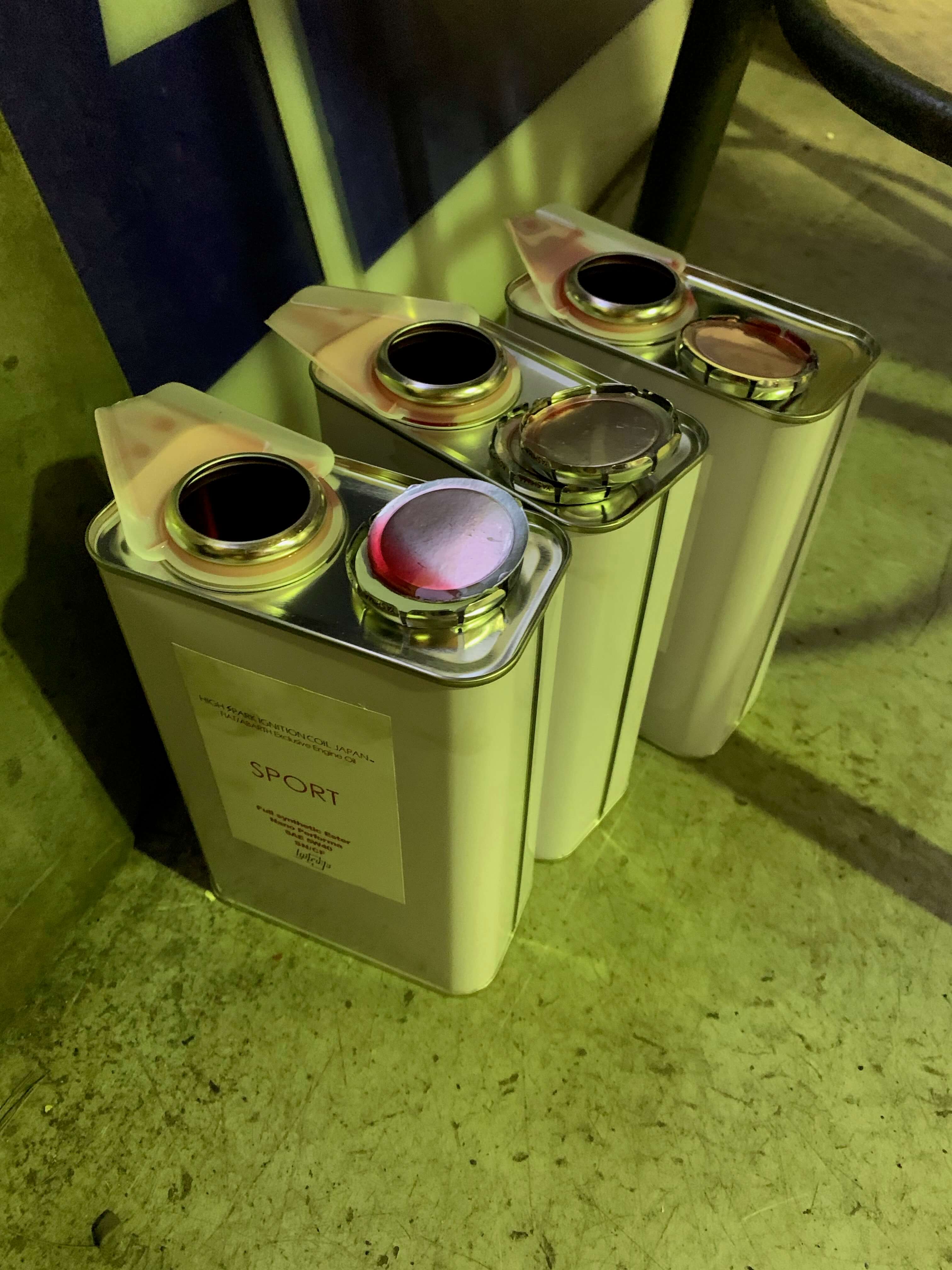 このオイル、鮮やかな赤い色が特徴的。エンジンに入れている様子はまるで、心臓に生き血を注ぎ込んでるみたい。