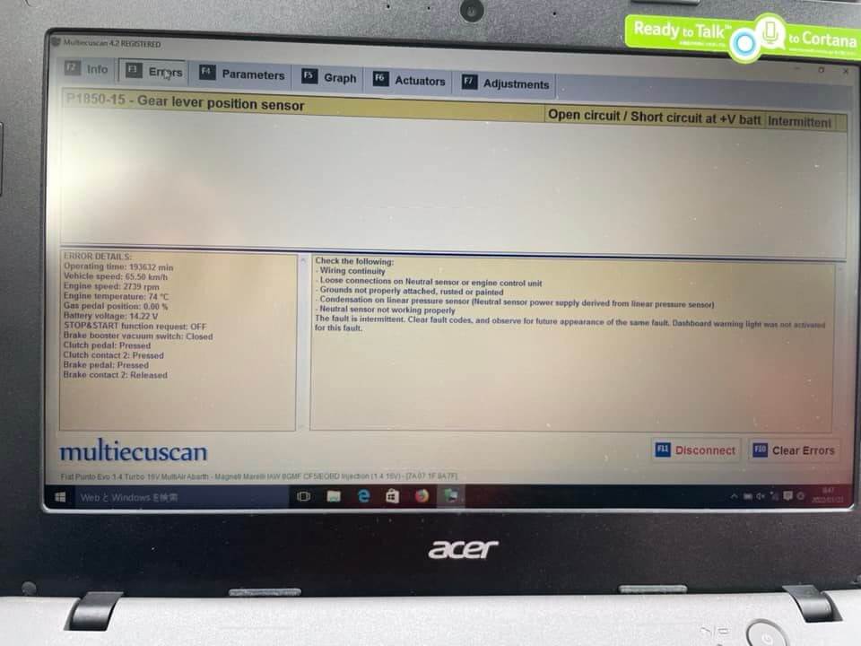 エラーの話を聞いて、プント仲間の隊長がイタ車乗りの強い味方、multiecuscan(をインストしたPC)を持ってきてくれました。