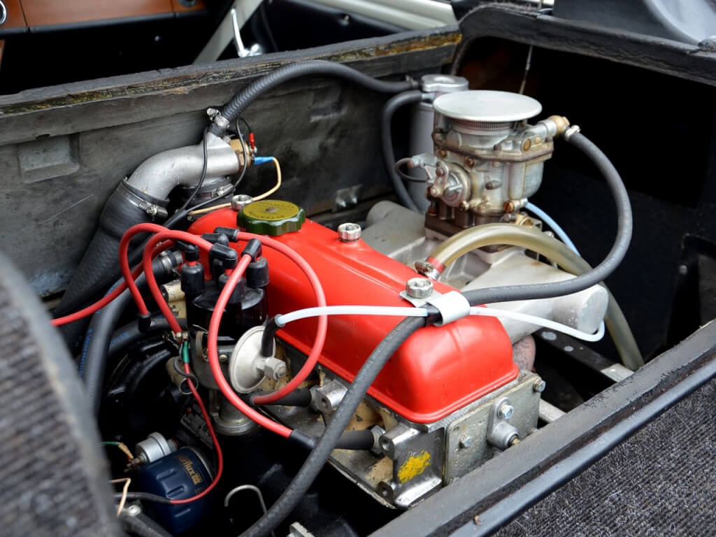 小見出しにもあるように、このクルマは世界初の市販ミッドシップ・スポーツカーとして記録されている。その証拠がこれ。ほら、ちゃんとエンジンがリアにあるでしょ。