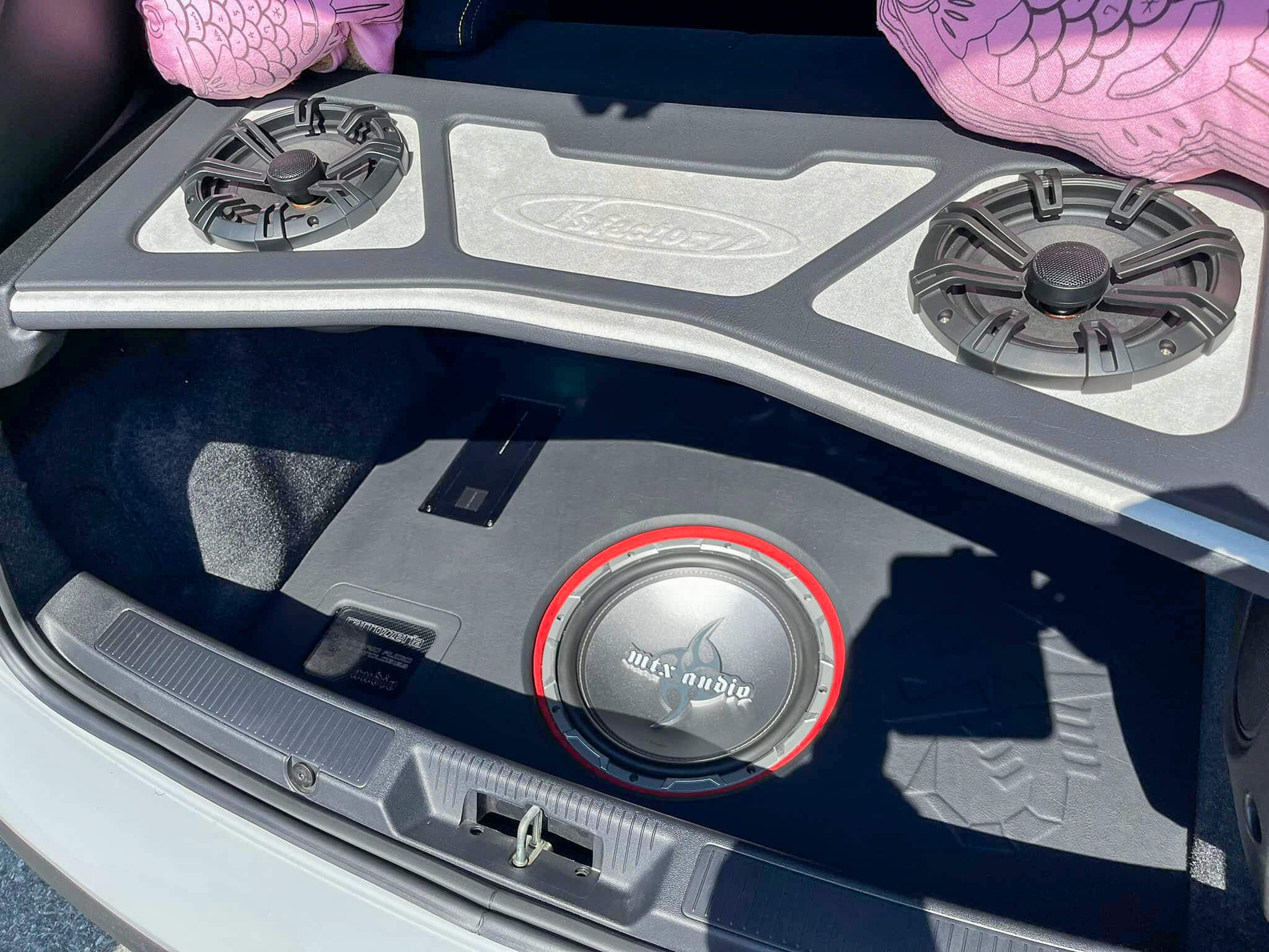 それからこんなふうに、トランクにウーハー仕込んでるSuper Sportsも。この1台は目立ちやすいように通路側に駐めてもらって、音楽流してもらったり。