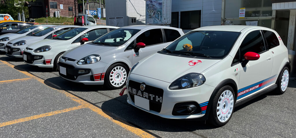 プント、販売されてから年月が経っているから、オーナーにそれなりに改造されたり、整備されたりしている個体が多い。なので、並べるときはそれも意識して。