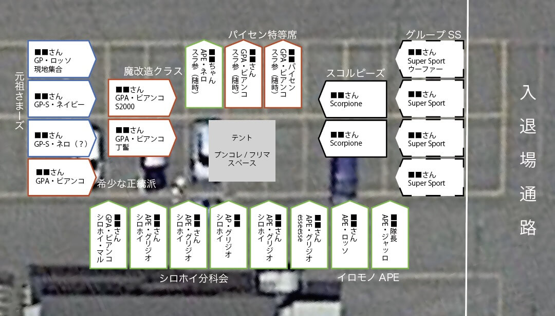 あのとき、参加車(者)はゴチャゴチャに駐車させられたんだよ。プントも、500系も、124もいっしょくた。ミ●も●ソもいっしょ。会場はお台場の駐車場で広々してて、導線も引きようがあったのに。