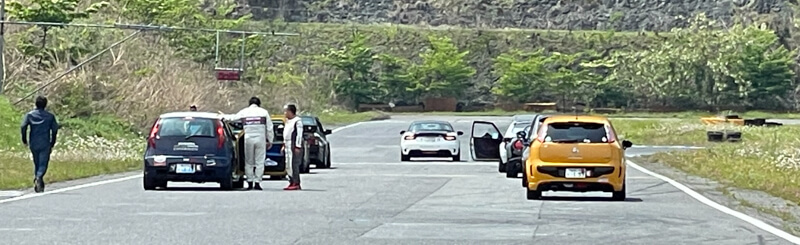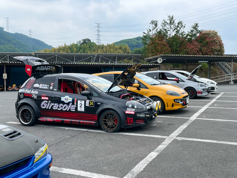 レースは午前中に慣熟走行、午後1時から3時間耐久レース本番。持ち時間は一人あたり45分。ただしハンディキャップがあり、チームごとにピット滞在時間が決められている。速いチームは時間長め、女子や旧車がいるチームは短め。うちら「PUNTO CORSE」チームは比較的少なめの20分。それらをチーム4人で消化しつつ走るわけ。